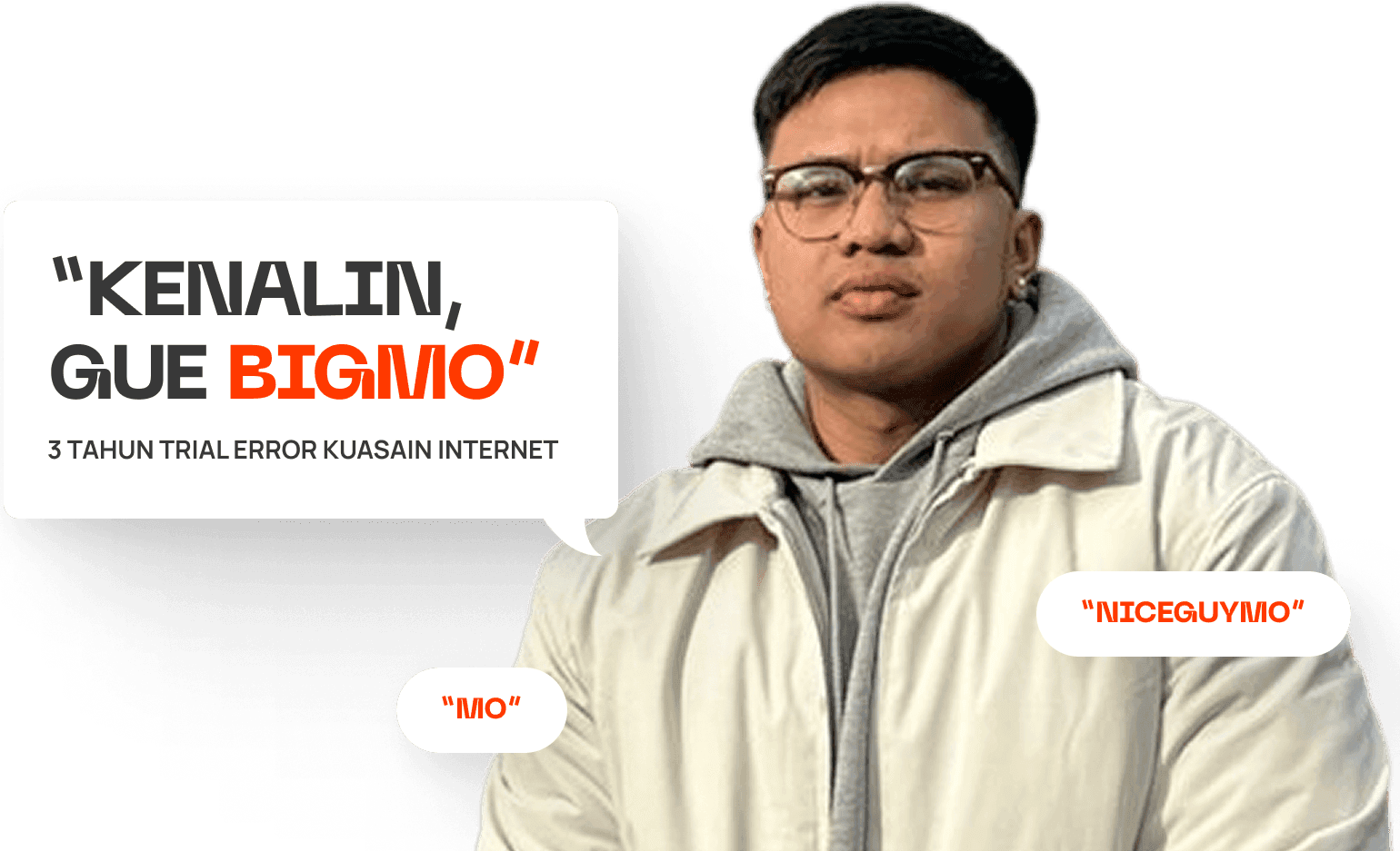 Hi semua! Nama gw Mo, lu bisa panggil gw niceguymo, bigmo. Kalo lu liat Tiktok, Instagram reels, gw udah kuasain internet. Ada yang bilang gampang lah, modal clipper doang, modal nyenggol doang, but banyak BANGET faktor di luar itu yang orang-orang ga liat. Di sini, gw bakal nuangin gimana cara gw kuasain internet modal 3 minggu persiapan, dan 3 tahun trial and error.